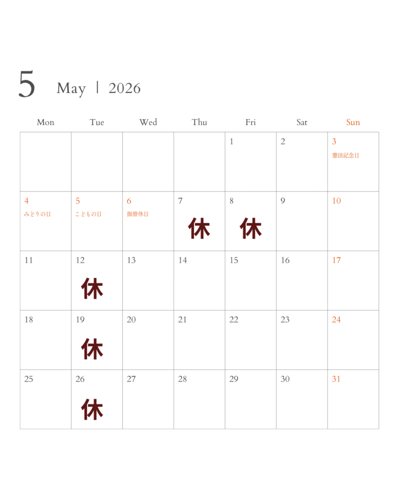 < 定休日 > 毎週火曜日